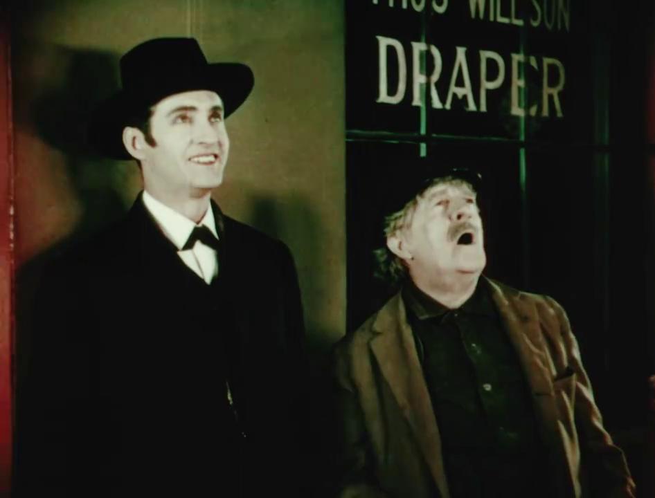 I should also mention that there are scenes here shot in Process 2 Technicolor, including a brief performance of a highly impressive yet annoyingly uncredited pair of acrobats; Fely’s stage performance at Tony Pastor’s; and, best of all, the scene when electricity lights up 14th St. One old woman literally dies happy.